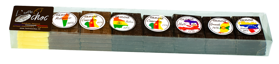 6 chocolats Pures-Origines pour un tour du monde gourmand.
